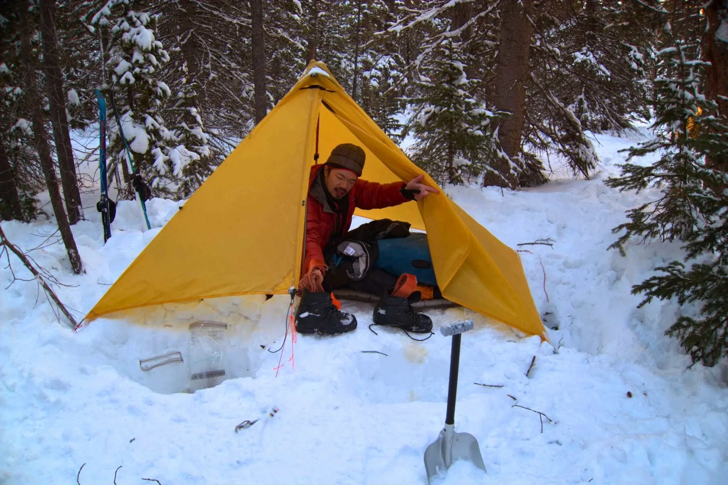An Off Trail On Track participant testing a Big Agnes AXL insulated sleeping pad with under a tarp. Photo courtesy Duncan Cheung.
