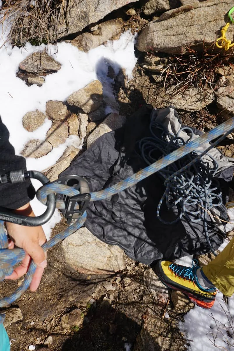 Some climbers are adamant about keeping their gear on a rope tarp or in their bag at all times to avoid contamination. Asphalt can ding up your gear and create sharp edges. Dirt can become lodged in key areas of the belay device. So, it’s really important to stay cognizant of where you’re placing your gear when it’s not on your harness.