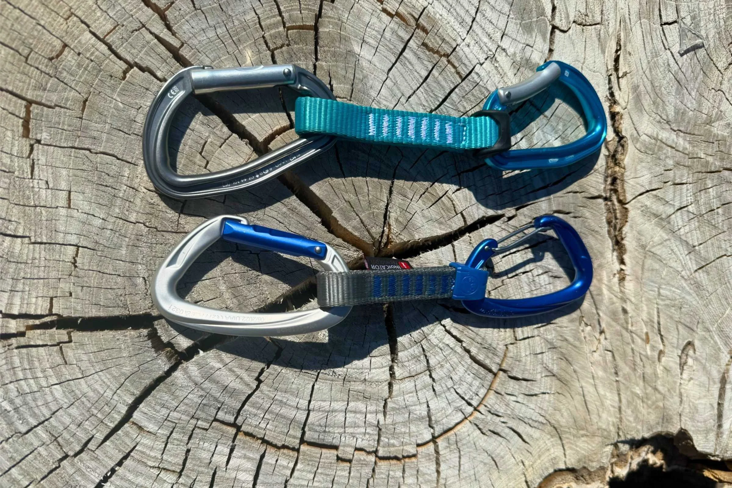 At home "lab testing conditions," the author clipped them into bolts and eyelets on his hang board wall and his knotty board to simulate rope drag through the draws and spent enough time snapping the gates open and closed to make his neighbors think he had a problem, or might be a giant mammalian mantis shrimp—and to make his cat think him utterly insane.