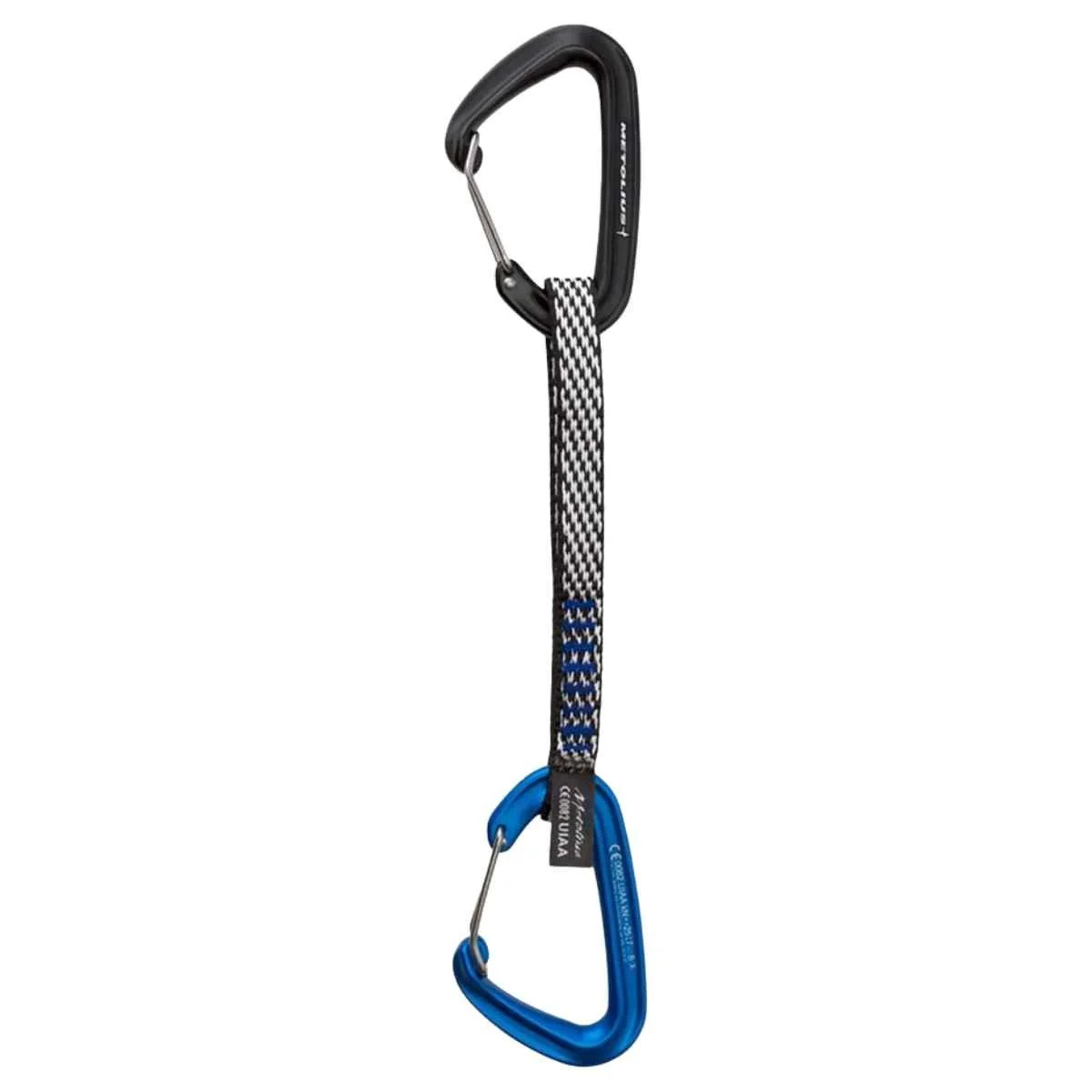 Despite its diminutive size, it’s a fully featured quickdraw with a captive carabiner and a sling carabiner on the dogbone. The carabiners themselves are small enough to fit inside some medium and large-sized carabiners. This obviously reduces weight significantly but also makes it harder for people with larger hands and those wearing gloves to manipulate them. Still, if lightness is paramount to your climbing, these are an ideal option.