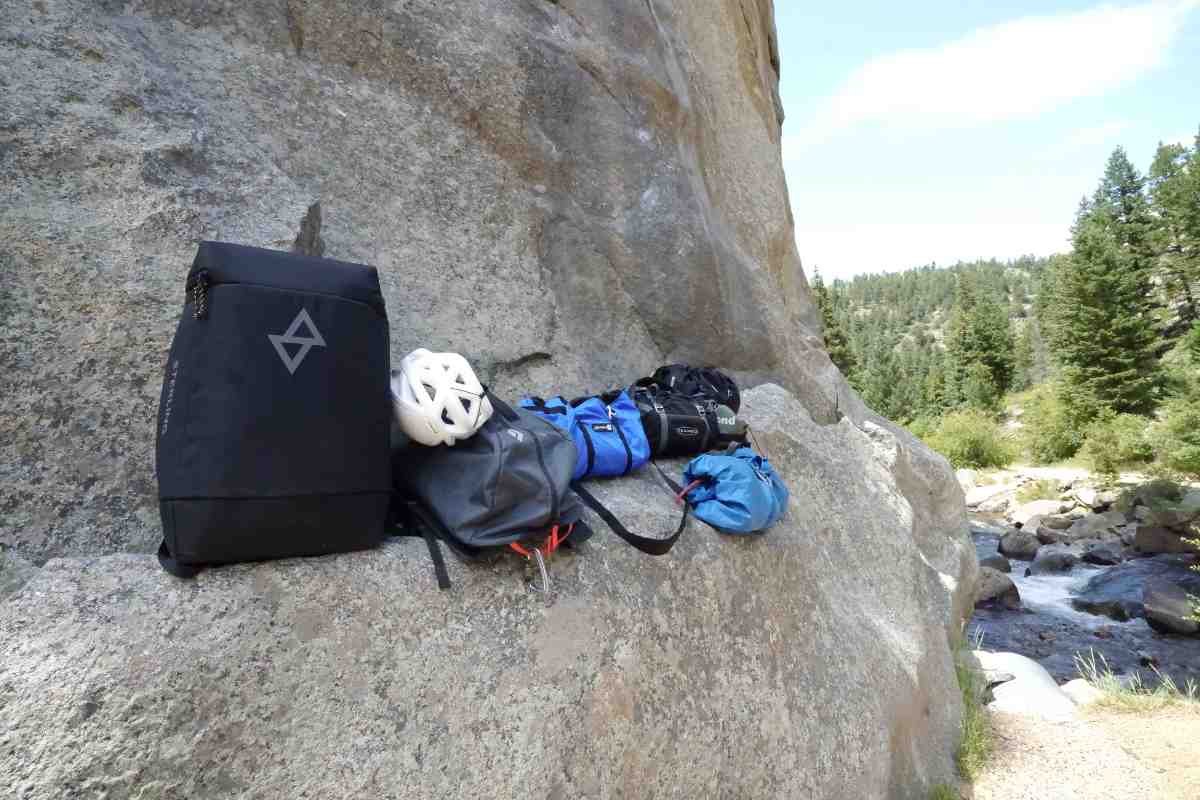 A ruggedized, well-draining backpack with enough space to hold a canyoneering rope and other gear. These aren’t too commonly used for regular rock climbing. (None tested in this round)