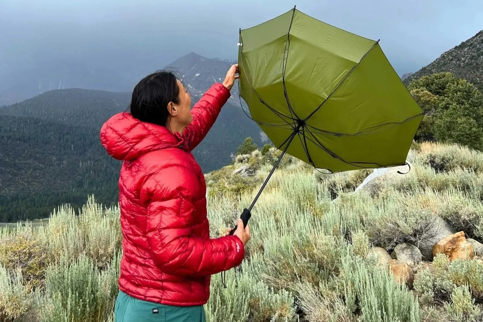 Hiking umbrellas are susceptible to flipping inside-out in high winds.