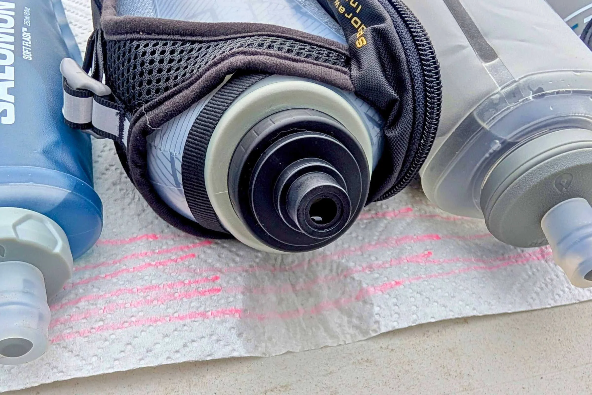 Test any new bottles at home before taking them on important runs, because they could leak. We tested every water bottle covered here for leaks, and the only one that did was the Nathan Speedraw Plus. This bottle only leaked if the curved valve was pointing at the ground, so it won’t leak if you’re holding it upright.