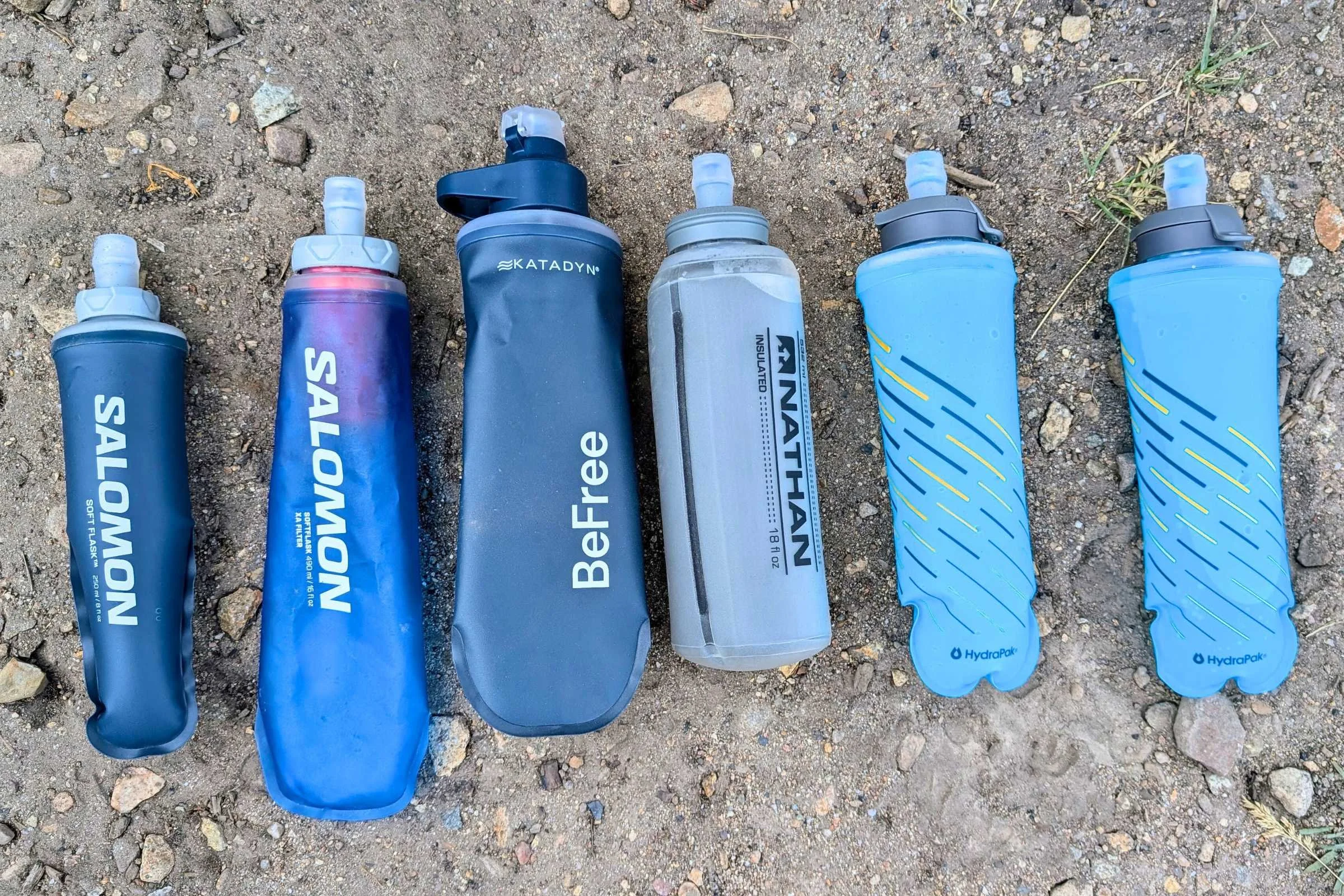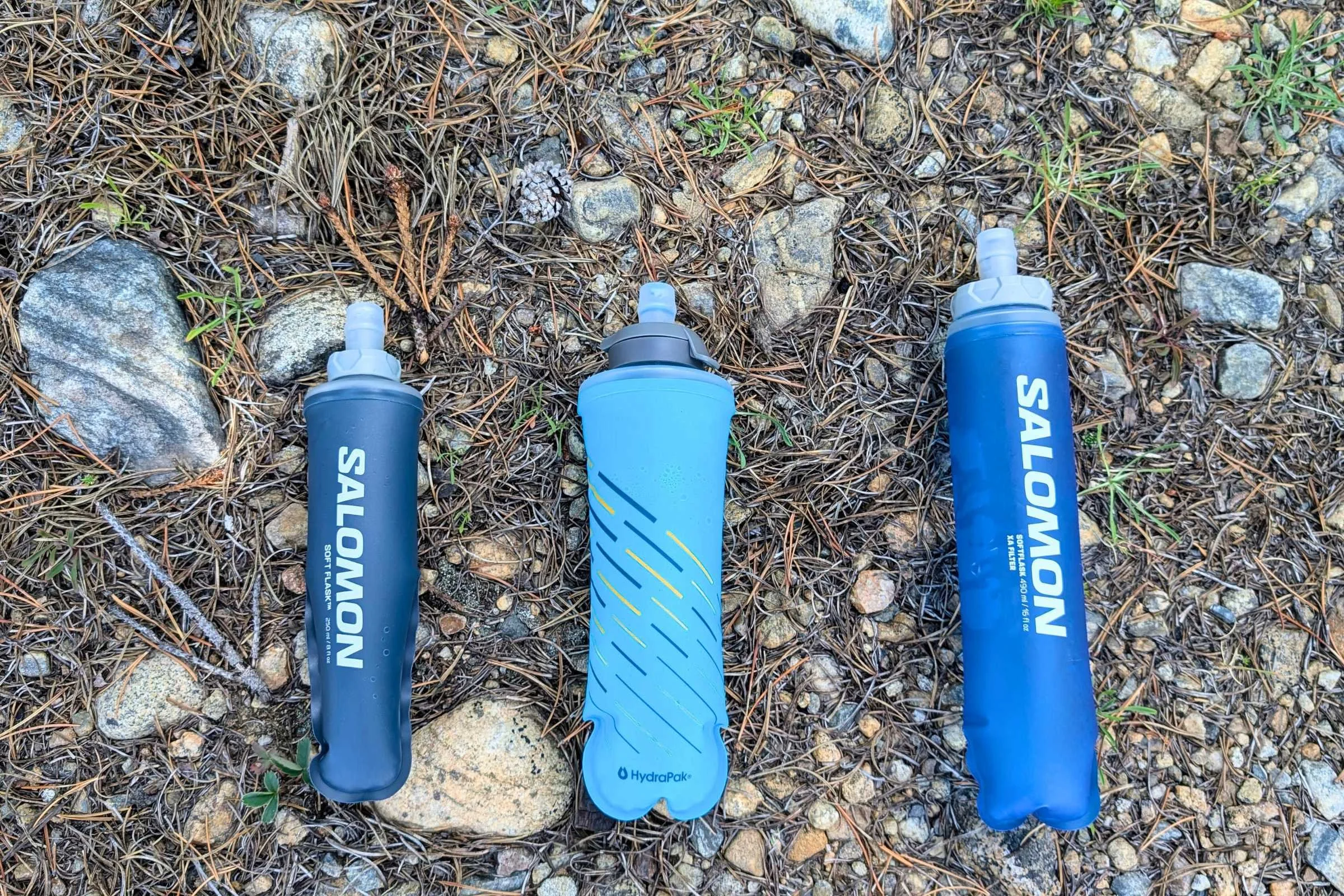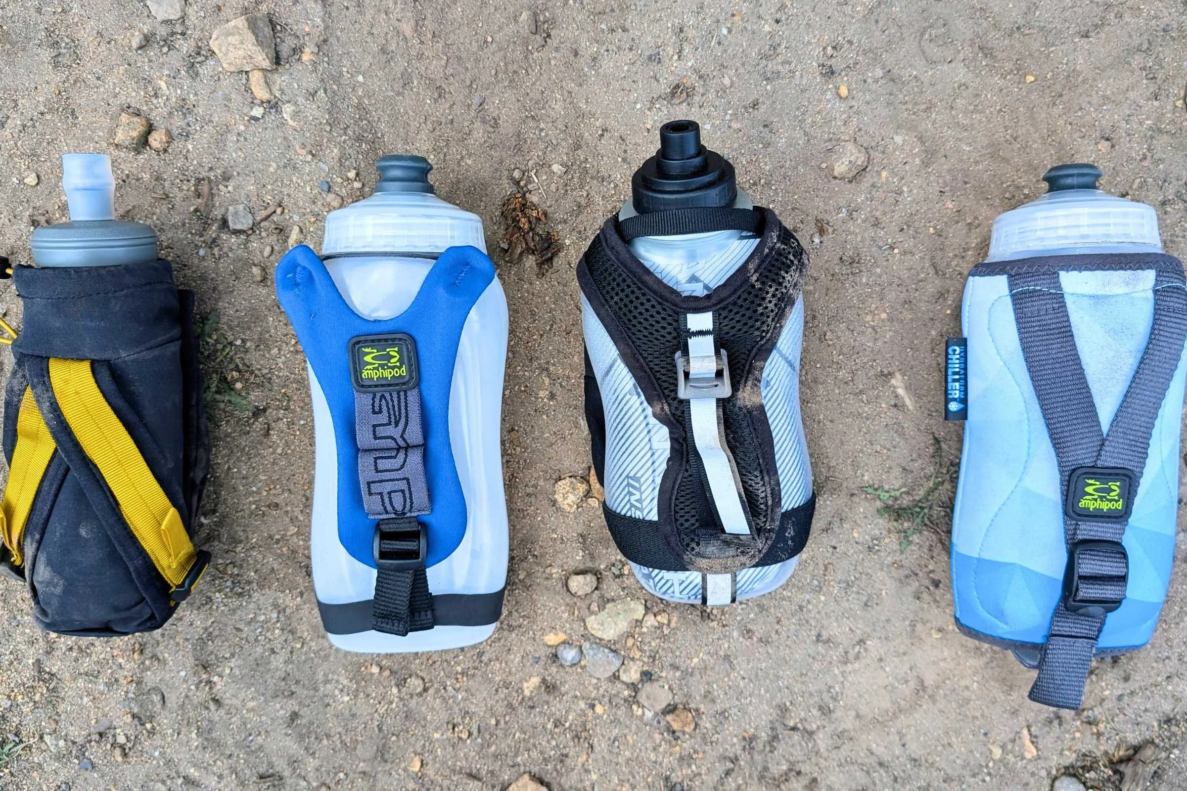 Soft flasks, handhelds, and hard-sided water bottles for running vests and belts