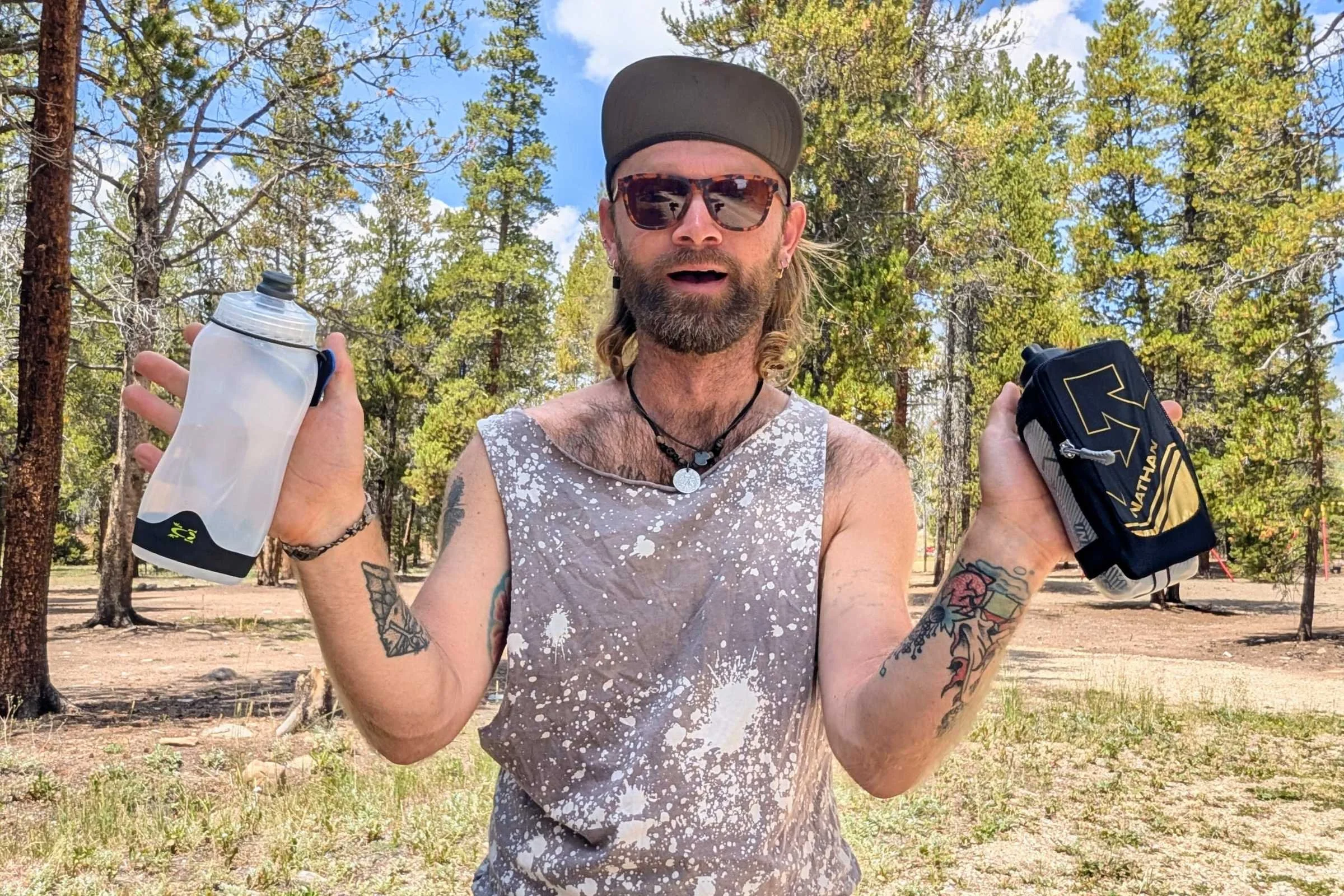 And then there are handheld running bottles. These bottles are often simply the same soft flask with a strap or pouch for your hand. There are other handhelds made of hard-sided plastic, and some Treeline runners like those better because they don’t flop around when you’ve drunk half your water. Others like the soft flask-style handhelds because once you’ve drunk all the water, you can shove them in a pocket and not carry them for the rest of your run.