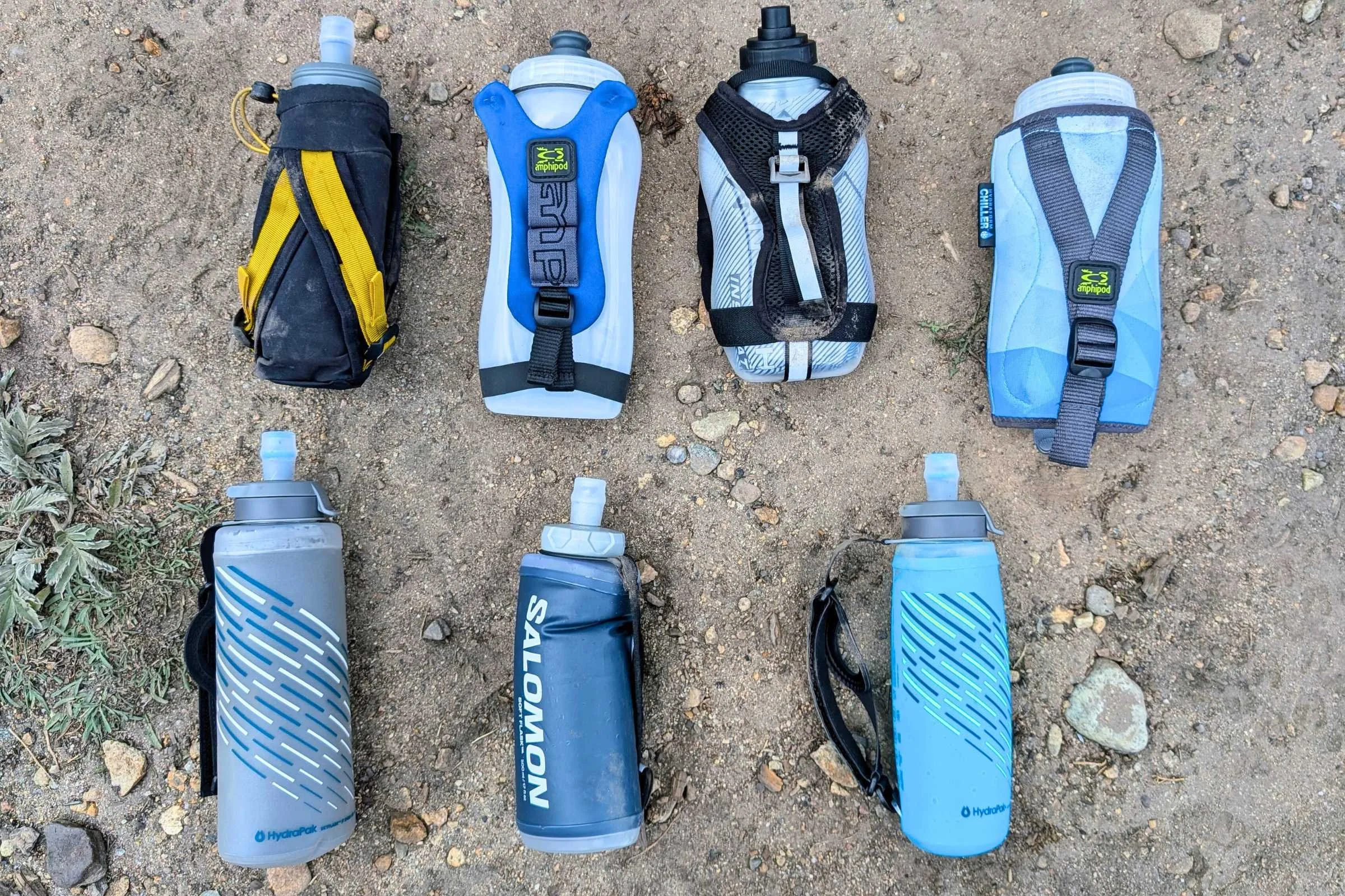 Running water bottles come in two forms: soft flasks and handheld hydration bottles. Most soft flasks are made by HydraPak. Yes, even those Salomon soft flasks that come with our overall favorite running vest, the Salomon Adv Skin, are made by HydraPak. But HydraPak makes a ton of different shapes of their soft flasks.