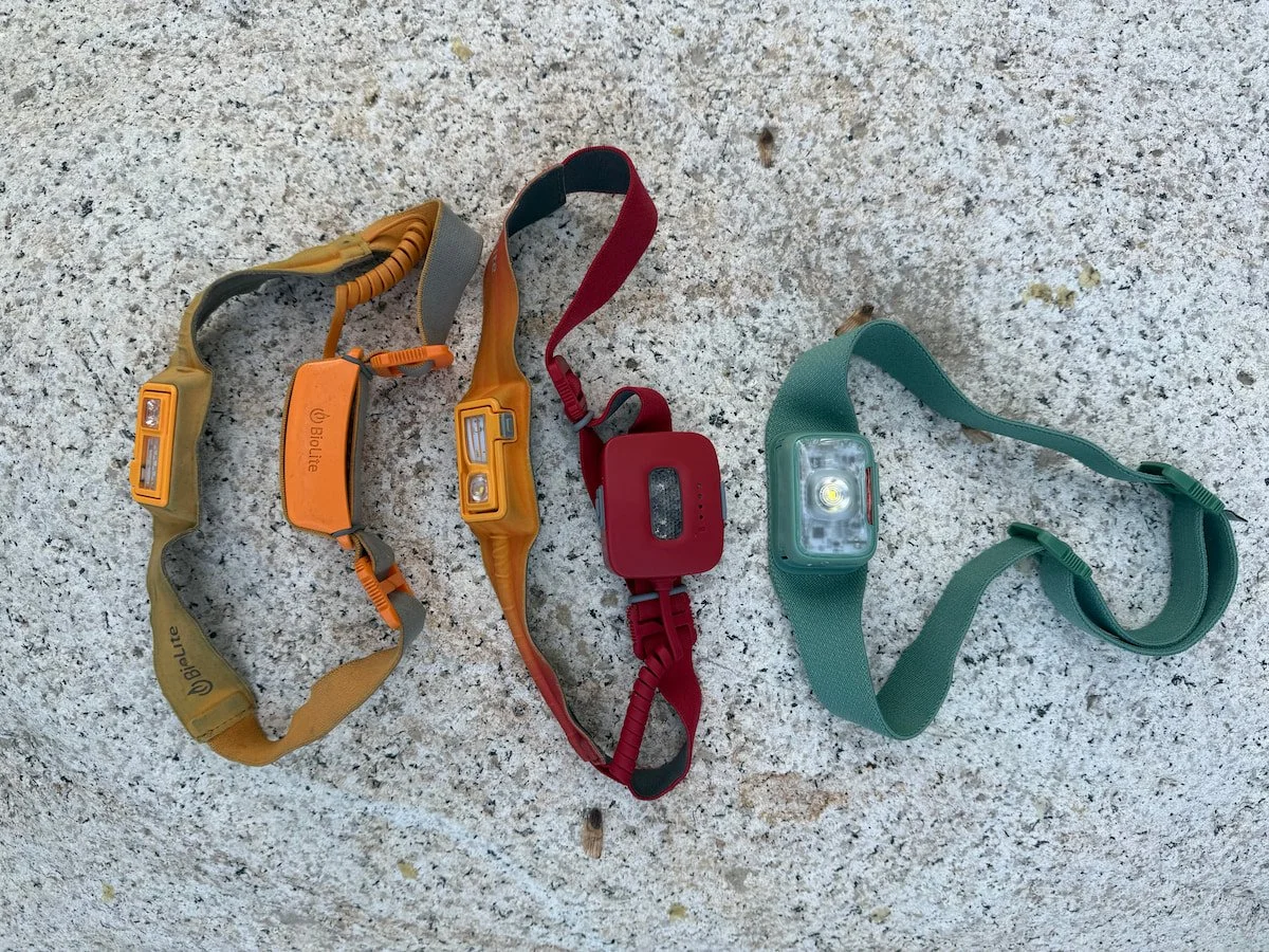 The evolution of the BioLite headlamps. The HeadLamp 330 (left), the BioLite Dash 450 (middle), and new BioLite Range 400 (right).