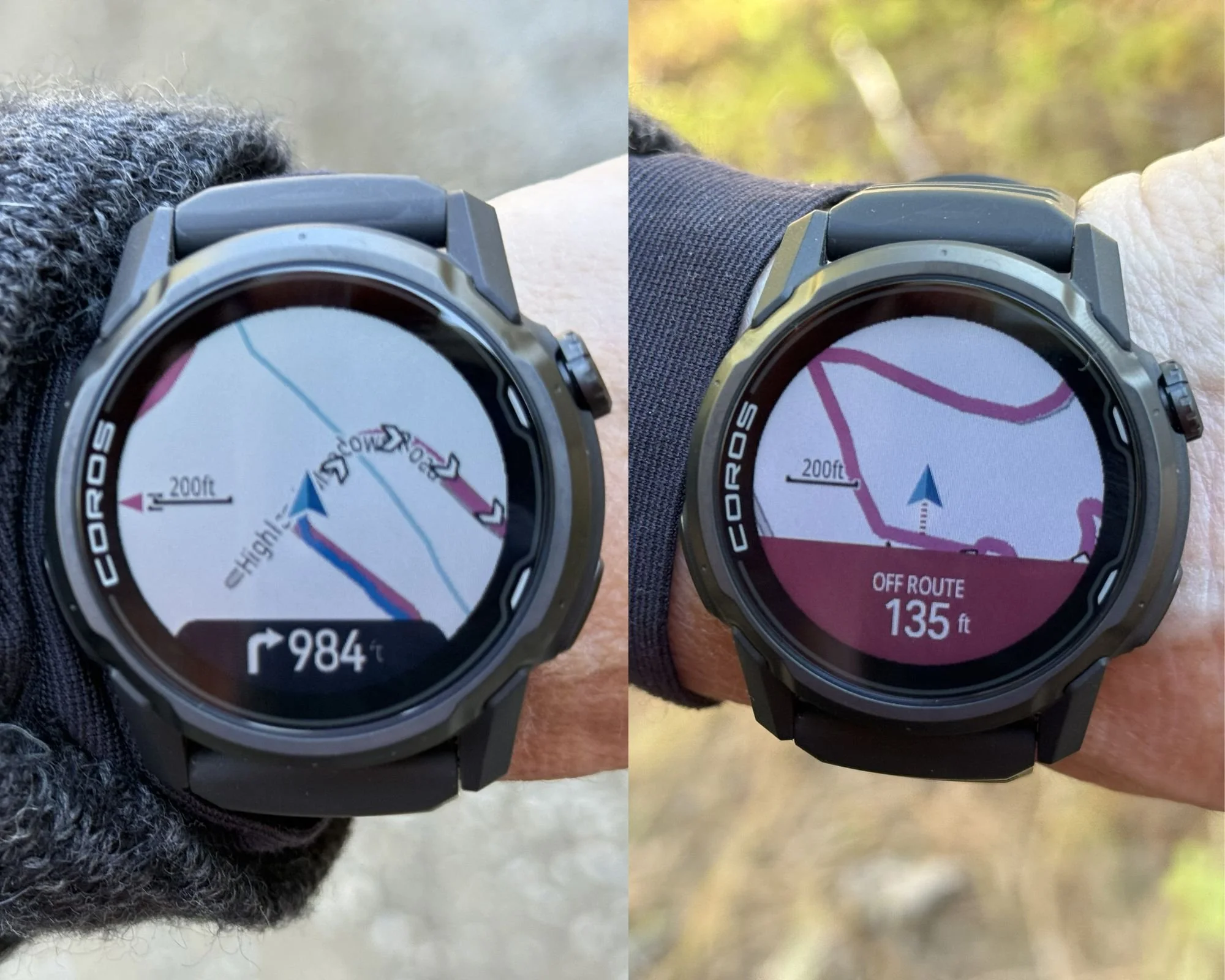 Navigation features. COROS only offers a limited number of navigation data fields and screens. Turn-by-turn navigation is available, but distance remaining and ETA can not be added to customized data screens. There is a simple “distance and ascent remaining” data screen when navigating a route. But I would like to add these fields to a multi-field data screen with other metrics, which isn’t currently possible.