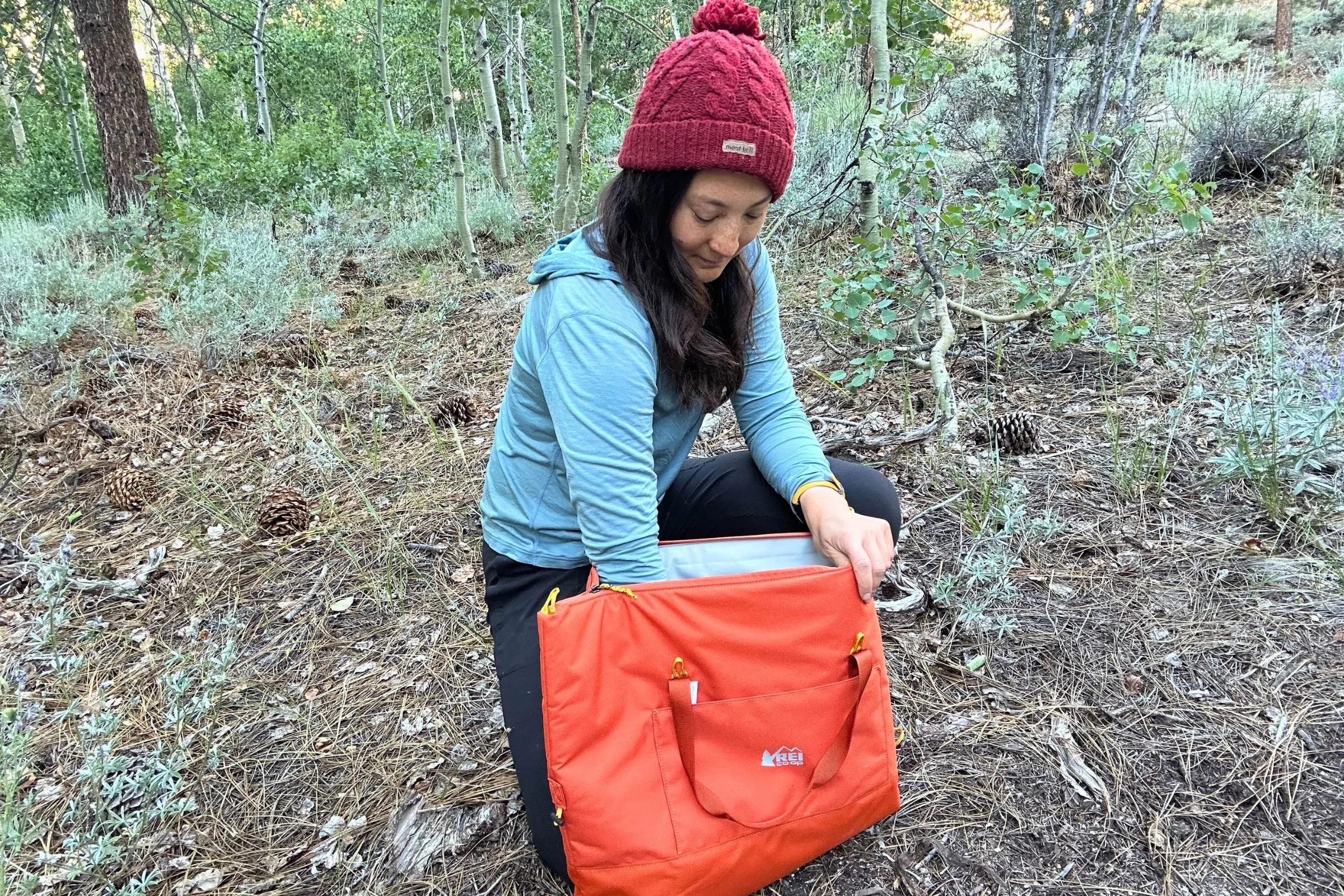 I spent a month living out of the REI Campwell 18 L Folding Cooler while camping and living at a summer camp in the Eastern Sierra. We used it first to transport food up from the city to the camp, especially fresh fruit, vegetables, pesto, and fancy cheeses that were hard to find locally. Then, we used it daily to take lunch to lakes for swimming and kayaking, and to trailheads for daily hikes. And we used it for grocery trips to the "big" town an hour away to keep the groceries cool on the way home.