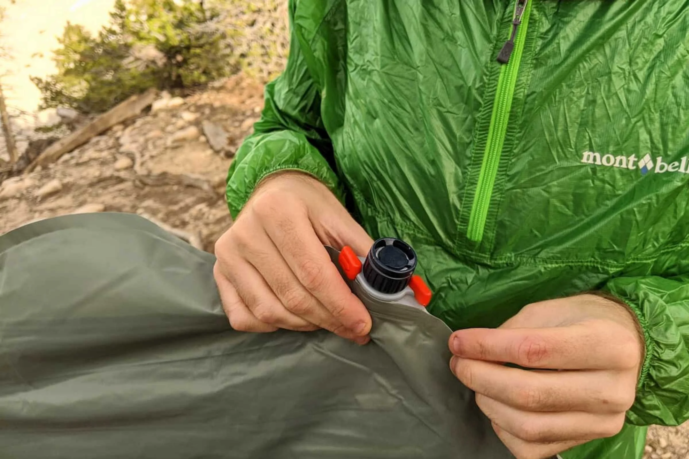 The XTherm is best inflated with the included pump sack or with a battery-operated pad inflator. In a pinch, you can inflate it with your breath.