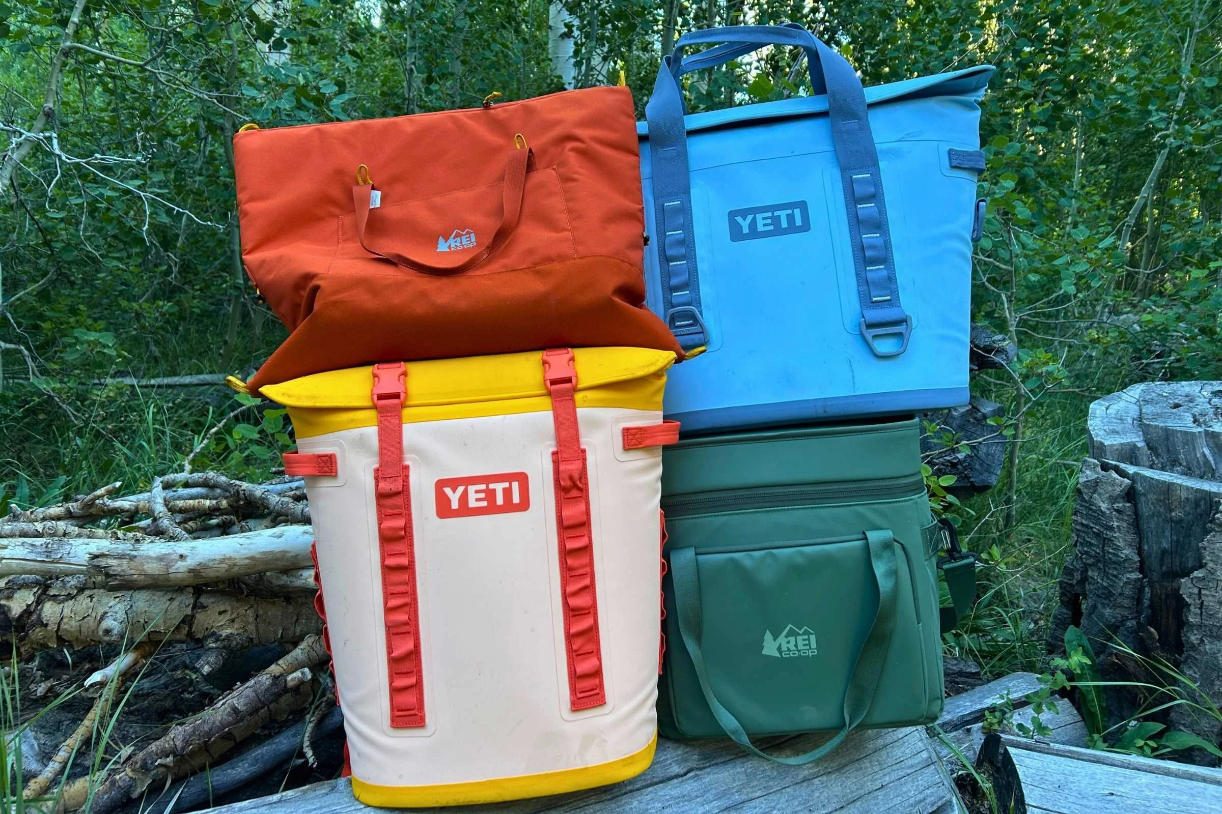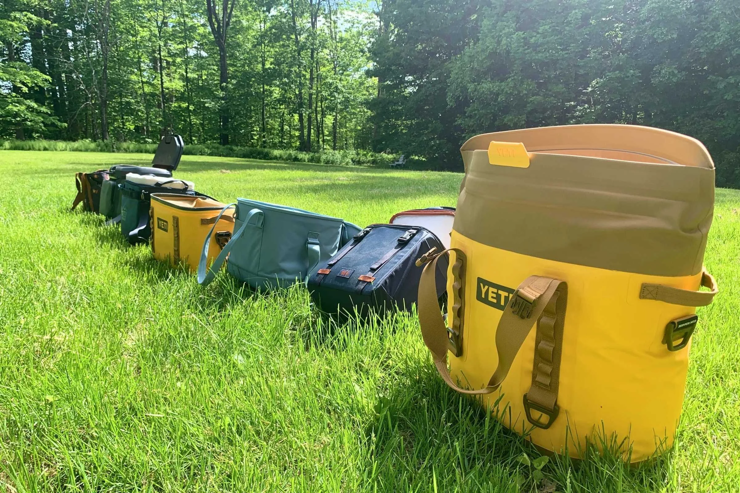Testing the YETI M30 2.0 cooler (light blue) vs. other similar soft coolers.