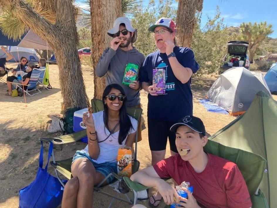 Girl Scout cookies are a great gift for campers, if you can find them this time of year. These first time campers at a busy campsite in Joshua Tree National Park certainly thought so!