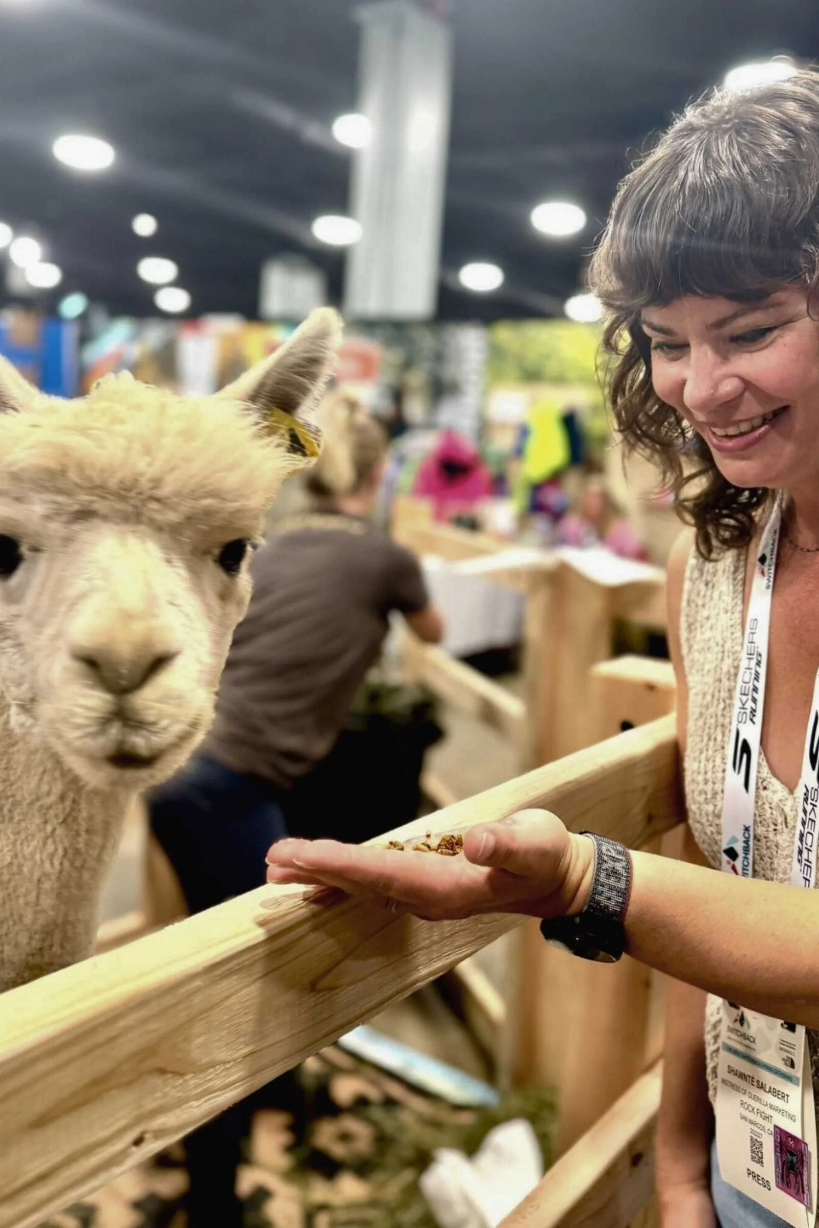 The PAKA Apparel booth was full of soft socks, sweaters, sun hoodies…and even a pair of alpacas!